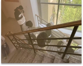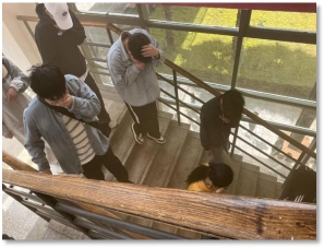 13时30分,随着演练总指挥一声令下,消防警铃响起,演练正式拉开帷幕。模拟火情设定在教学楼,消防演习烟雾弹释放出滚滚浓烟。各楼层引导老师迅速就位,沉着冷静地组织学生用湿毛巾捂住口鼻、弯腰低姿,按照预定疏散路线快速、有序地向安全区域撤离。整个疏散过程紧张有序,全体师生在规定时间内安全到达集结地点,达到了预期效果。