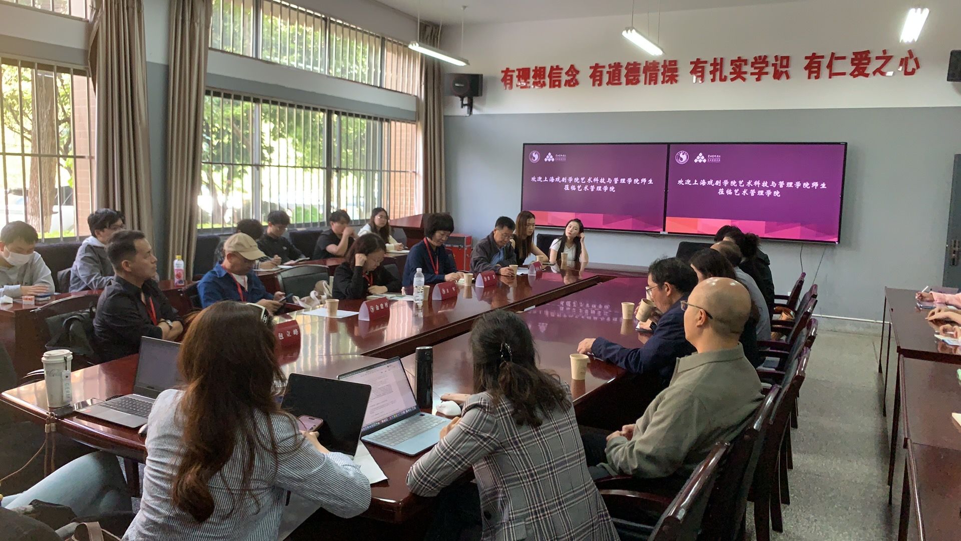 2025年9月25日上午,上海戏剧学院艺术科技与管理学院党总支书记唐芳、戏剧文学系党总支书记方军、艺术管理系主任董峰等一行八人莅临我院,开展专题调研交流。我院全体党政班子成员及艺术管理系师生代表热情接待来访团队,共同召开交流座谈会。