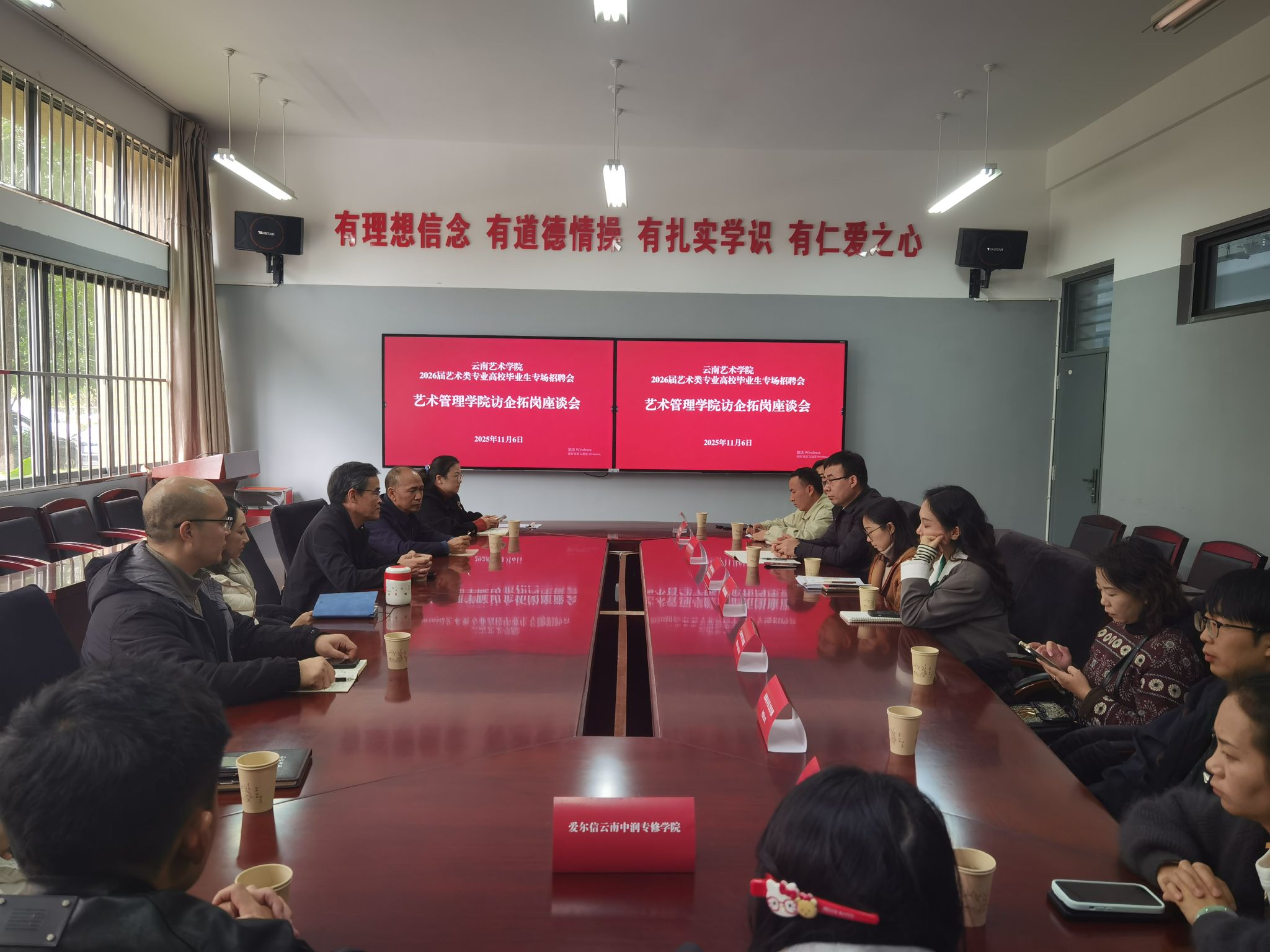 为进一步落实“访企拓岗促就业”专项行动要求,促进校企合作,拓宽就业渠道,2025年11月6日,艺术管理学院邀请了10家用人单位开展校企合作暨访企拓岗交流座谈会,陈劲松副校长、艺术管理学院党政班子成员和用人单位负责人参加了座谈会议。