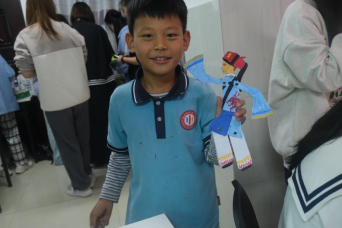 活动中,志愿者以图文并茂的形式生动讲述了彝族长诗《阿诗玛》中主人公阿诗玛与阿黑哥勇敢追求自由、坚韧不屈的动人故事。随后,通过引导居民细致观察彝族传统服饰,重点介绍了红、黑、蓝、白等代表色彩及其象征意义,并解析了典型纹样的文化寓意与艺术特点。在充分了解文化背景的基础上,居民们在志愿者的指导下,运用画笔、卡纸、剪刀和两脚钉等材料,亲手制作出富有民族特色的阿诗玛形象。