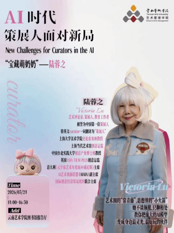3月24日下午,由艺术管理系承办的"AI时代策展新局"主题讲座在云南艺术学院图书馆报告厅举行。华人首位女策展人、艺术评论家、博士生导师、艺术家陆蓉之老师受邀担任主讲,为我系师生带来了一场关于人工智能与艺术管理前沿的深度分享。