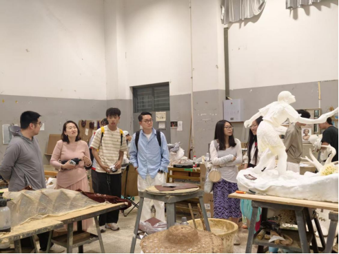 座谈结束后,广州美术学院师生参观我校美术学院雕塑系,实地了解学科建设与艺术创作成果。本次交流深化了两院友谊,推动教学经验互通,为今后长期合作奠定坚实基础。未来双方将继续携手共进,共促艺术管理专业实践育人高质量发展。