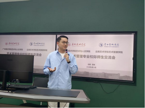 交流会上,艺术管理系主任李思蒂详细介绍学院专业建设、跨专业融合创新、“艺游未尽” 艺术节、产教融合及与云南大剧院、昆明剧院、融创文旅城合作的特色育人模式。广州美术学院苏梓钊老师分享课程改革、自主考核、田野考察等教学创新经验。双方教师围绕人才培养、实践教学、艺术乡建等议题充分交流,凝聚发展共识。