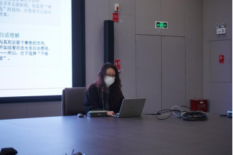 导读结束后,2025级研究生11位同学结合自己所学专业以及研究方向,基于《庄子》一书中的寓言作了主题发言,韩扬文博士针对每一位发言的同学进行逐一细致评议,肯定同学们文本细读扎实、问题意识鲜明、跨学科思考自觉。同时指出研读《庄子》,既要入乎其内,读懂文字、训诂、脉络;也要出乎其外,联结时代、专业、自我,让经典活在当下、用在当下。